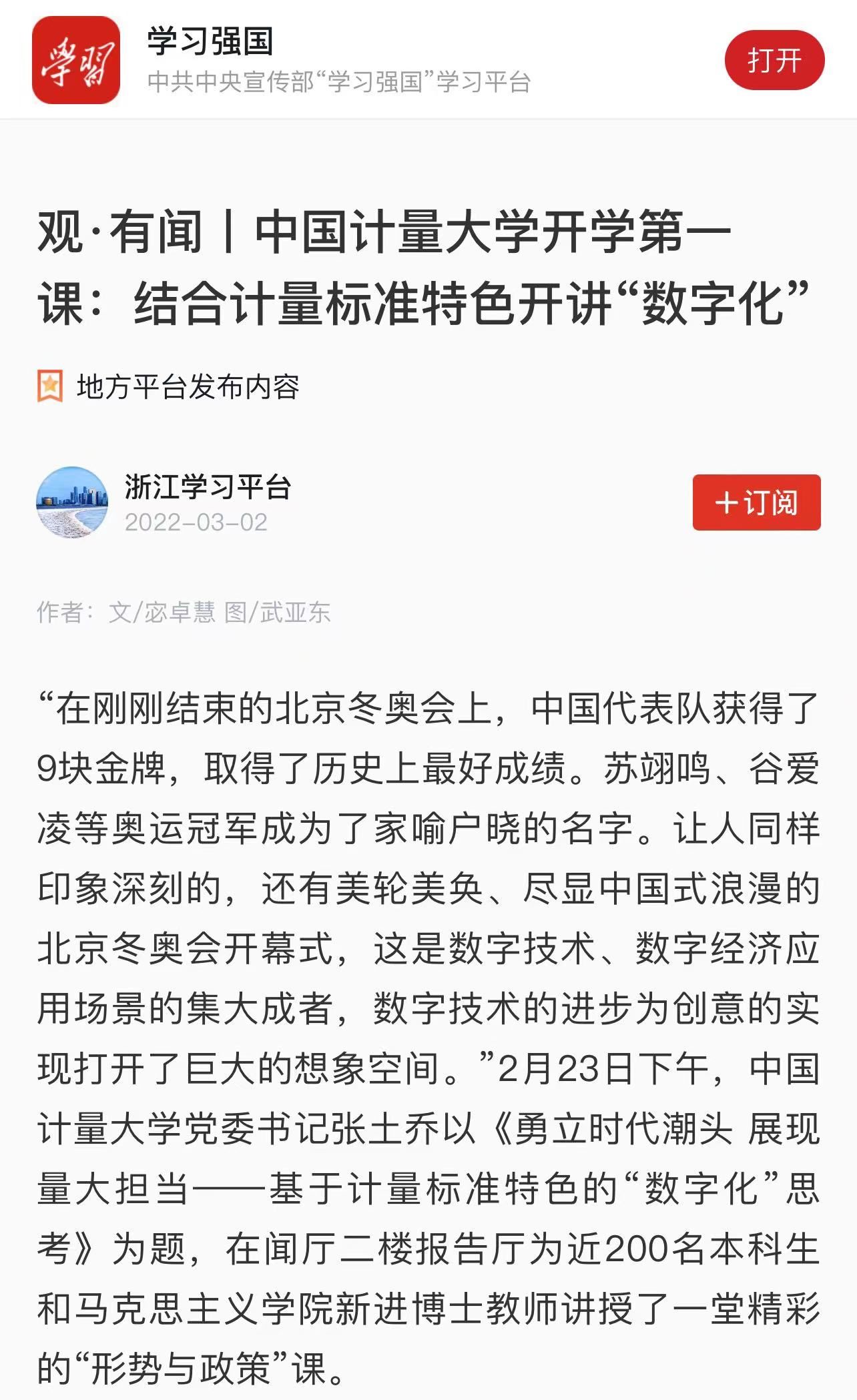[學習強國]中國計量大學開學第一課:結(jié)合計量標準特色開講“數(shù)字化”