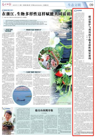 2023年2月11日,《光明日報》發表浙江省新型高校智庫“質量發展法治保障研究中心”研究員、中國計量大學碳中和與綠色發展研究中心執行主任虞偉署名評論文章《破譯保護與利用的生物多樣性財富密碼》。