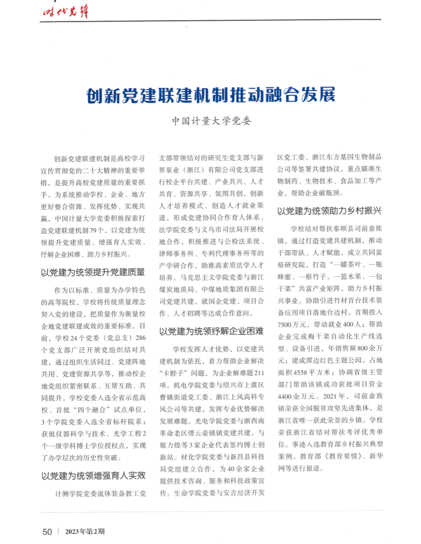 近日,浙江省委組織部主辦的《時代先鋒》刊發學校黨委署名文章《創新黨建聯建機制推動融合發展》,宣傳學校黨建“四個融合”經驗做法。