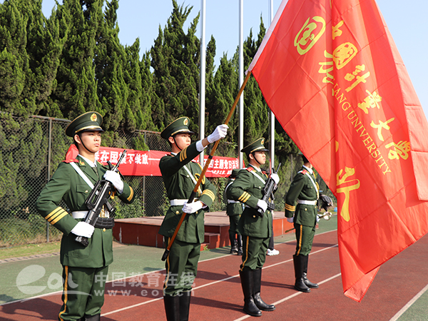 “我們將不忘初心,牢記使命,爭做愛國主義的排頭兵,讓青春在國旗下綻放。”該校國旗護衛隊隊長張寧如是說。