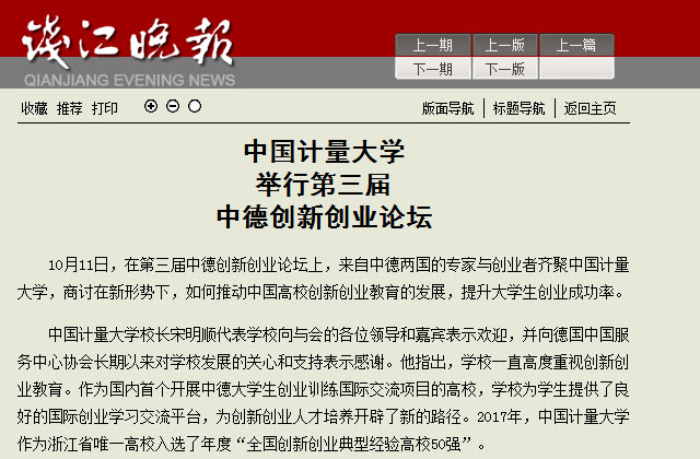 【錢江晚報(bào)】 中國(guó)計(jì)量大學(xué)舉行第三屆中德創(chuàng)新創(chuàng)業(yè)論壇