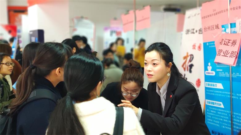 招聘會共吸引了中國銀行浙江省分行、寧波銀行、招商銀行、泰隆商業銀行、中信證券、華西證券、商源集團、浙江物產、內蒙古伊利乳業集團、三替集團、浙江省標準化協會等35家優質單位參加。其中,銀行等各類金融機構占比1/3,校友單位占比近1/2。各單位共提供了500余個面向畢業生的工作崗位和100余個面向低年級學生的實習崗位,專業需求深度貼合經管學院現有全部專業。