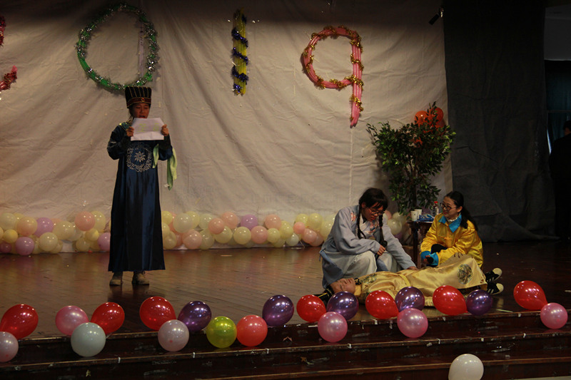 一曲由馬院師生同臺合唱的《我和我的祖國》成了聯歡會的主旋律,一句句歌唱,吐露的是師生們的真情;一顆顆紅心,表達的是對祖國的熱愛。他們把心中對祖國的贊美與祝福都化作期盼,訴說著每一位量大人對祖國的無限熱忱與依戀。此外,晚會穿插的互動節目猜歌名、你畫我猜等節目吸引著現場觀眾的積極參與,臺上臺下互動頻繁,其樂融融。小品《太子挺住》、《量大火炬手》將觀眾引領入一個詼諧幽默的世界,相聲、舞蹈輪番上陣將會氣氛一次又一次推向高潮。精彩的節目使整個會場氣氛激揚澎湃、掌聲連連、笑聲不斷。蒞臨晚會現場的領導、老師們也毫不遜色,傾情演唱《感恩的心》等經典歌曲,加之以精彩的T臺秀,合唱《走進新時代》,朗誦《雷電頌》,盡展工作之外的風采。