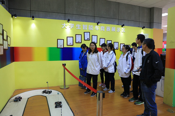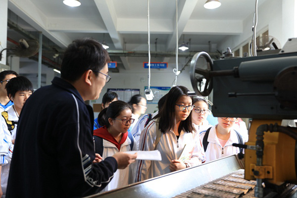 在工程訓(xùn)練中心,同學(xué)們參觀了金工實習(xí)和電子實習(xí)基地的各類機床設(shè)備,以及各類最新的課外科技競賽創(chuàng)新成果,并對此表現(xiàn)出極大的興趣。