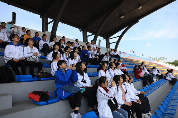 隨后,師生一行來到北操場觀看了航模表演。一架架自主設(shè)計制作的航模吸引了學(xué)生的眼球,在學(xué)校航模隊隊員的現(xiàn)場講解和操作下,飛機順利完成一連串動作,起飛、滑翔、噴氣、降落,現(xiàn)場掌聲和歡呼聲經(jīng)久不息。