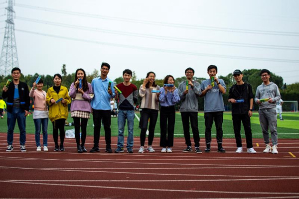 趣味聯(lián)誼活動分為“個性化自我介紹”、“破冰組隊確定隊名”、“分組對抗”三個環(huán)節(jié)組成,在個性化自我介紹后,全體參與者通過現(xiàn)場抽簽的方式進行分組,同學與老師共同參與游戲和各項比賽,乒乓速遞、移動冰塊、三人四足、穿衣接力跑、跳大繩,不論老師還是研究生每個參與者都全身心的投入的比賽中,經(jīng)過激烈角逐,最后“Give me five”隊奪得一等獎 ,其他4支參賽隊伍分別獲得二等獎和三等獎。