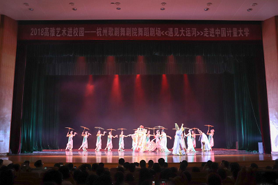9月26日晚,40周年校慶活動高雅藝術進校園之杭州歌劇舞劇院舞蹈劇《遇見大運河》上演,千余名師生一同觀看。