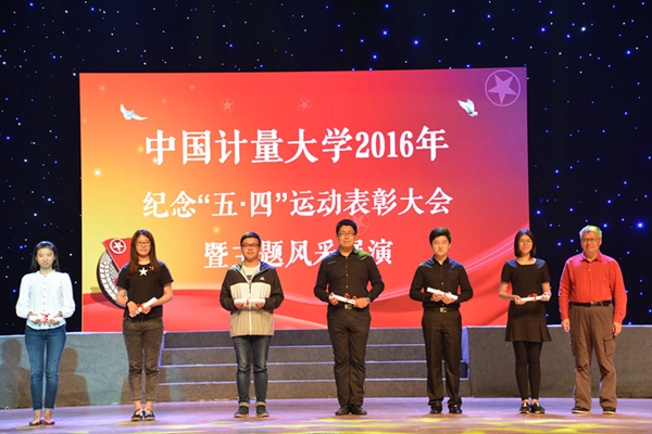 5月11日晚,中國計量大學(xué)2016年紀念"五.四"運動表彰大會暨“希·計”主題風采展演在嘉量大會堂隆重舉行。校黨委副書記陶偉華、機關(guān)職能部門代表及各學(xué)院黨委書記、副書記、團委書記、部分獲獎教師代表出席本次表彰大會。