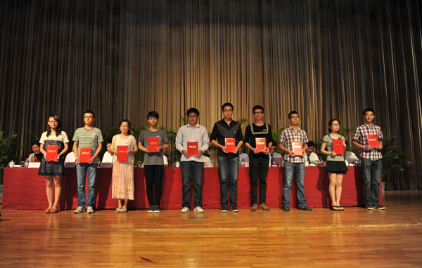 副校長俞曉平宣讀了省級和校級優(yōu)秀畢業(yè)生表彰決定和量院首屆“吉尼斯紀錄”獲獎者表彰決定。學校領導為優(yōu)秀畢業(yè)生代表頒發(fā)了榮譽證書,為研究生代表頒發(fā)了學位證書,為“吉尼斯之星”獲得者頒發(fā)了獲獎證書。