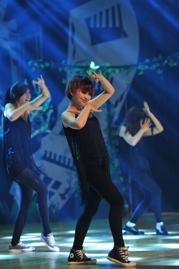 舞臺上,校器樂團合奏了一曲《神話》,現代科技學院民樂團帶來了好聽的《豐收鑼鼓》,校舞蹈隊跳起了《鶯歌舞》,校均鐘合唱團聲樂組深情合唱《Do you hear the people sing》,還有魔術表演《那些年》、歌曲《你飛到城市的另一邊》,由周翼領銜的J舞社《和舞蹈的故事》等節目輪番登場,激起了臺下同學們熱烈的掌聲和尖叫聲;子午劇社《一次關于我愛的訓練》抽象、婉轉的表達了我校大學生對母校的熱愛、對青春的追求;校廣播臺的“臺精”們表演的《光陰的故事》更是勾起了無數人剛進大學校園時青澀樣子的回憶;小品《夢想方程式》講述了四位大學生在追求夢想途中艱難前行最終有所感悟的故事,爆笑的臺詞和精彩的演繹讓大家也感受到他們對夢想的執著追求;一號樓的宿管阿姨登臺唱起了《最炫民族風》,場下同學也大笑著積極合唱Rap;晚會最大的高潮就是十佳歌手以“斗歌”的形式聯唱金曲,尖叫聲、掌聲在嘉量大會堂內經久不息。