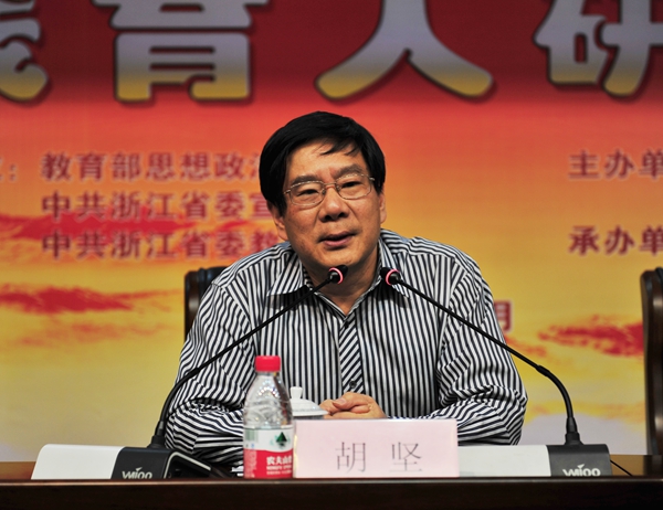 浙江省委宣傳部常務副部長胡堅指出,十八大以來,中央對于意識形態的工作十分重視。意識形態工作的核心在思想教育,思想教育的關鍵在高校。報告中,他分析了國際形勢和網上的意識形態斗爭,談了對思政課、思政教育的內容和目的的理解,指出:思政課的學習除了學知識、學方法外,更要學眼界、學境界。他強調,思想政治教育工作已經取得了顯著成果,但仍需大量努力。他指出,道路自信、理論自信、制度自信是思想政治教育的根本,并對我省加強和改進高校思想政治工作的“雙十”舉措進行了介紹。