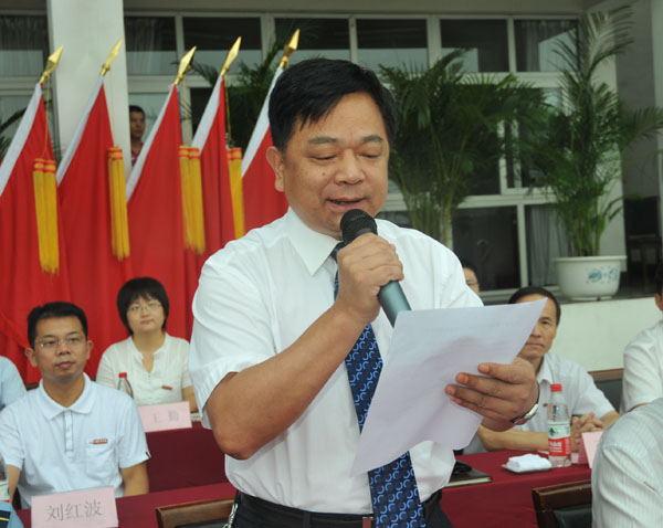 馮時林副校長宣讀了軍訓師建制和任命書。教官李兵和10環境1班李典澤分別代表軍訓教官和軍訓學生發言。