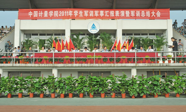 副校長馮時林宣讀了《關于表彰中國計量學院2010級學生軍訓優秀方隊、軍訓優秀組織單位等先進稱號獲得者的決定》,宣布了軍訓優秀方隊、軍訓優秀組織單位、軍訓積極分子、軍訓優秀教官、軍訓先進個人和軍訓內務先進排的評選結果。校領導和空28師領導對獲獎單位和獲獎個人代表進行了表彰。