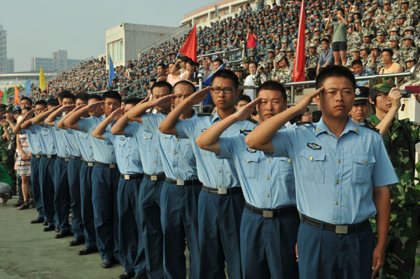 9月4日上午7:30,我校在北田徑場隆重舉行了2011年學生軍訓匯報表演暨總結表彰大會。空軍28師首長范俊華、政治部副主任湯森彪、秘書科科長施亞明等部隊領導和我校黨委書記于永明,黨委副書記徐涌金、陶偉華,副校長蔣家新、馮時林、俞曉平,紀委書記王小華,黨委委員、學生處處長范慶瑜等學校領導出席了會議。大會由黨校辦主任楊政主持。