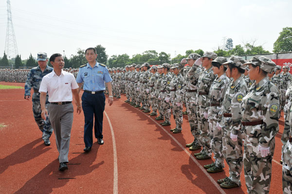 9月7日上午9:30,我校2012年學生軍訓匯報表演暨總結表彰大會在北田徑場隆重舉行。校長林建忠,校黨委副書記徐涌金、陶偉華,副校長馮時林、俞曉平、宋明順,校紀委書記王小華,黨委委員、學生處處長范慶瑜,空軍28師首長范俊華、嘉興場站副站長唐軍、秘書科科長唐新亮,及各二級學院領導、全體軍訓工作領導小組成員出席大會。大會由黨校辦主任楊政主持。