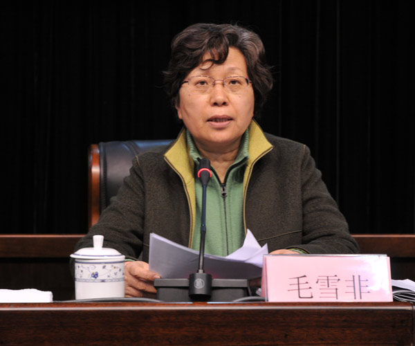 省委指導檢查組組長毛雪非在大會上作重要講話。她對學校黨委在前一時期對學習實踐活動高度重視,做了大量扎實認真的準備工作表示了充分的肯定,對學校的學習實踐活動提出三點意見和要求。第一,要充分認識開展深入學習實踐科學發展觀活動的重大現實意義和緊迫性,進一步增強責任感和使命感。第二,要準確把握中央和省委的要求,扎實開展好第二批學習實踐活動。在學習實踐活動中,要把深入學習科學發展觀貫徹始終,要把應對挑戰和解決突出問題貫徹始終,要把健全完善科學發展體制機制和相關制度貫徹始終,要把堅持群眾路線貫徹始終,要把黨員干部率先垂范貫徹始終。第三,要切實加強領導和指導,努力使學習實踐活動成為人民滿意工程。一是要真正落實領導責任,二是要切實加強指導檢查,三是要始終堅持統籌兼顧,四是要形成輿論宣傳的強勢。認真扎實地搞好這次學習實踐活動是一項重大的政治任務,她表示,省委指導檢查組將按照省委和省委學習實踐活動領導小組的部署和要求,深入學習領會中央和省委的精神,認真做好政策指導、發現問題、督促檢查等工作,加強與學校黨委的溝通協調,發揮好省委學習實踐活動領導小組和開展活動單位之間的橋梁紐帶作用,共同完成這次學習實踐活動的各項任務。