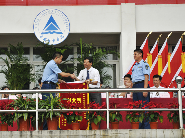 副校長俞曉平宣讀了《關于表彰中國計量學院2009級學生軍訓優秀方隊、軍訓優秀組織單位等先進稱號獲得者的決定》,宣布了軍訓優秀方隊、軍訓優秀組織單位、軍訓積極分子、軍訓優秀教官、軍訓先進個人和軍訓內務先進排的評選結果。校領導和空28師領導對獲獎單位和獲獎個人代表進行了表彰。