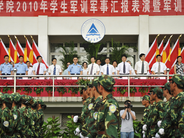 11名軍訓優秀方隊的代表精神抖擻地走上主席臺,從學校領導和空軍28師部隊領導手中接過榮譽證書,激動和喜悅寫滿他們青春的臉龐。9月5日上午,我校在北田徑場隆重舉行2010年學生軍訓匯報表演暨總結表彰大會。5000多名2009級受訓學生經歷了為期兩周的軍訓磨礪,滿懷豪情,接受檢閱。