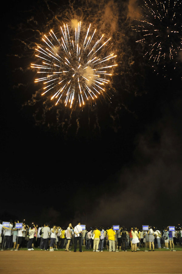 9月13日,量院的夜空下,璀璨的煙花映襯著一張張年輕的笑臉,他們將開啟人生又一個嶄新的夢想之旅。我校2010級新生開學典禮在北田徑場隆重舉行。學校全體黨政領導出席大會,并親自為新生代表配戴校徽,與全體新生共同見證這難忘的一刻。