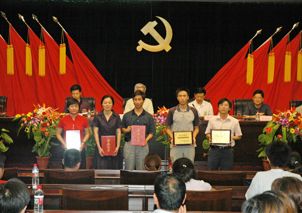 6月30日,我校紀念中國共產黨成立85周年暨表彰大會在小報告廳二樓會議室隆重召開。會上,校黨委書記姚盛德要求全校共產黨員樂于、善于、勇于承擔責任,以卓有成效的工作實績發揮黨員先鋒模范作用。   在講話中,姚盛德代表學校黨委向全體共產黨員致以節日的問候,向受到表彰的先進集體、個人表示熱烈祝賀。姚盛德說,受到表彰的同志是全校共產黨員的代表和典范,是值得我們學習的榜樣。回顧學校走過的歷程,是全校共產黨員按照黨員的標準嚴格要求自己,努力工作,為學校的發展貢獻力量。在此向你們表示衷心感謝。   姚盛德在講話中指出,共產黨員的稱號代表著先進和光榮,更意味著責任和奉獻。共產黨員的先進性就是位于前列,走在前列,前列者理所當然地具有示范作用,具有引領的功能。走在前列,既體現著在已有的路上要走在前列,更意味著有開拓新路的精神。共產黨員的先進性,不是空洞的口號,而是實實在在的行動。每一個黨員在工作的時候,標準要嚴,質量要好,效率要高,在做好自身工作的同時,要團結和帶領廣大群眾,共同把工作做好。在工作過程中,尤其在出現困難的時候,要迎難而上,研究新情況,解決新問題。   關于共產黨員的責任,姚盛德說,責任就是與崗位、身份相符合相一致的職責。黨員責任的含義涵蓋著要樂于、善于、勇于承擔責任。樂于承擔責任,是黨員應有的工作態度,體現著精神境界和思想品德。善于承擔責任,是一種標準,沒有一個好的標準,就談不上善于承擔責任,學校幾年來的快速發展,正是說明了共產黨員在工作過程中為自己確定了一個標準。姚盛德要求全校所有黨員要用心的工作,用心地研究,以研究促工作,把工作做好。要具有干成事情的能力,追求卓越,要務實、高效、創新,任何一樣工作都要追求實實在在的效果。   姚盛德指出,勇于承擔責任就是要知難而上,知難而進。奉獻是一種精神境界,更是一種處世的行為,往往體現在矛盾的時候,體現在份外的事情、難做的事情上,體現在利益少甚至沒有利益的事情上,因為你是黨員,要正確地處理好矛盾,正確地做好一個黨員應有的選擇,正是有了黨員的先進、責任和奉獻,才有了共產黨員稱號的光榮。   關于評建工作,姚盛德強調,以評促建是涉及學校發展的大事,黨委要求每一個黨總支、黨支部、黨員以卓有成效的工作,積極發揮示范作用,按照評建工作的標準和要求,確保以飽滿的精神狀態和卓有成效的工作實績,圓滿完成評建工作的任務。廣大共產黨員要引領廣大教職員工以主人翁的精神投身到以評促建工作中去,對已經明確的工作任務,任何通過努力可以做到的事情,必須保質保量做好。他相信,有全體共產黨員的共同努力,有廣大師生的共同參與和支持,學校評建工作的目標一定能夠實現。   林建忠校長在會上宣讀了《中共浙江省委教育工作委員會關于表彰浙江省高校先進基層黨組織、優秀共產黨員和優秀黨務工作工作者的決定》和《關于表彰會2005—2006學年校級先進黨支部、優秀共產黨員和優秀黨務工作者的決定》。校領導向省高校系統的先進黨支部、優秀共產黨員和優秀黨務工作工作者以及校級先進黨支部、共產黨員和黨務工作者頒發了獎狀和證書。校級優秀共產黨員袁昌名教授、校級優秀黨務工作者人文社科學院黨支部書記劉坤媛副教授在會上發言。與會人員共同觀看了影片《生死牛玉儒》。   表彰大會由校黨委副書記于永明主持。校領導徐涌金、侯宇,校黨委委員陶偉華、陳希武參加了大會。
