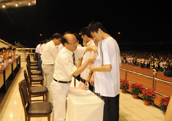 懷著暢求新知的志向和對(duì)美好未來的憧憬,又一批朝氣蓬勃的年輕學(xué)子跨入了中國計(jì)量學(xué)院的大門。9月8日晚,我校2008級(jí)新生開學(xué)典禮在校田徑場(chǎng)隆重舉行。林建忠、徐涌金、陶偉華、侯宇、蔣家新、馮時(shí)林等學(xué)校領(lǐng)導(dǎo),黨委委員、組織部部長(zhǎng)陳希武參加了大會(huì)。大會(huì)由黨委副書記陶偉華主持。   林建忠校長(zhǎng)在開學(xué)典禮上致辭。他代表學(xué)校向全體新生表示衷心的祝賀和熱烈的歡迎,對(duì)廣大學(xué)生和家長(zhǎng)對(duì)中國計(jì)量學(xué)院的信任表示衷心的感謝。林建忠在講話中對(duì)計(jì)量的歷史、計(jì)量的作用以及計(jì)量的內(nèi)涵作了深刻而精彩的闡述。他通過奧運(yùn)會(huì)上飛人博爾特將200米世界紀(jì)錄提高了0.02秒等生動(dòng)事例指出,計(jì)量的作用已經(jīng)涉及到國民經(jīng)濟(jì)、科技、人民生活的方方面面。他指出,中國計(jì)量學(xué)院作為中國計(jì)量、標(biāo)準(zhǔn)、質(zhì)量、檢驗(yàn)檢疫高等教育的國家隊(duì),有鮮明的大學(xué)特色,同時(shí)得到了社會(huì)的廣泛認(rèn)可。學(xué)校的師生期待與大家一起創(chuàng)建美好的未來。   林建忠校長(zhǎng)對(duì)新生們今后在學(xué)校的學(xué)習(xí)和發(fā)展提出了幾點(diǎn)希望。第一,精思國計(jì),細(xì)量民生。大學(xué)生應(yīng)該思考人與自然、人與社會(huì)、個(gè)人與國家、科學(xué)技術(shù)與人文精神的關(guān)系,在思考的基礎(chǔ)上建立正確的、明智的價(jià)值取向,要立愛國心、持公益志、經(jīng)世濟(jì)民、擇善而從,不斷強(qiáng)化自己的責(zé)任心和使命感。第二,適應(yīng)變化,把握開端。要及時(shí)調(diào)整好自己的心態(tài),盡快適應(yīng)環(huán)境的變化,摸索新的學(xué)習(xí)方法,盡快完成角色轉(zhuǎn)換。第三,勵(lì)志篤行,求真誠行。大學(xué)為大家提供了一個(gè)積累知識(shí)、探索真理、增強(qiáng)才干的平臺(tái),在大好時(shí)光中要更加珍惜,學(xué)會(huì)吸收、學(xué)會(huì)思考、學(xué)會(huì)應(yīng)用、學(xué)會(huì)創(chuàng)新,只有在大學(xué)里積累更多的勢(shì)能,才能在今后的工作中具有更大的動(dòng)能。第四,全面發(fā)展,多元吸收。要在積累知識(shí)、增加才干的同時(shí)陶冶性情、鍛煉體魄,增進(jìn)師生情誼,不斷錘煉和提高自己,確立一個(gè)向上的人生態(tài)度,為將來走上工作崗位奠定良好的品格基礎(chǔ)。林建忠校長(zhǎng)寄語新生,殷切希望西湖的靈秀與美麗能夠孕育出大家的從容與淡定,使大學(xué)生活過得更加均衡和愉快;而錢塘江水的空闊與潮涌能夠激蕩出大家的激情與壯志,使將來的學(xué)業(yè)與事業(yè)蒸蒸日上。   開學(xué)典禮上,學(xué)校領(lǐng)導(dǎo)親自為新生代表們佩戴了中國計(jì)量學(xué)院校徽,與全體2008級(jí)新生共同見證這難忘的一刻。   學(xué)校各二級(jí)學(xué)院的院長(zhǎng)或黨總支書記在典禮上先后致詞,他們或語重心長(zhǎng)或慷慨激昂的發(fā)言滿懷著祝福與希望,贏得了同學(xué)的陣陣掌聲。   老生代表浙江省學(xué)聯(lián)主席、校學(xué)生會(huì)主席、質(zhì)量與安全工程學(xué)院趙鑫,新生代表經(jīng)濟(jì)與管理學(xué)院阮洲波分別發(fā)言。理學(xué)院楊藝科帶領(lǐng)全體新生在開學(xué)典禮上作了莊嚴(yán)的入學(xué)宣誓。   開學(xué)典禮在在絢爛的煙花和隆隆的禮炮聲中結(jié)束。這是2008級(jí)新生們共同完成的成人禮,它標(biāo)志著新的學(xué)習(xí)和生活已經(jīng)開始。