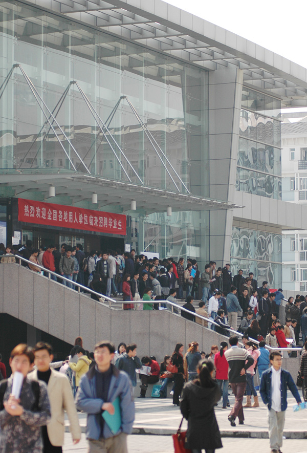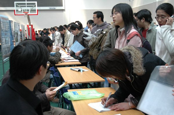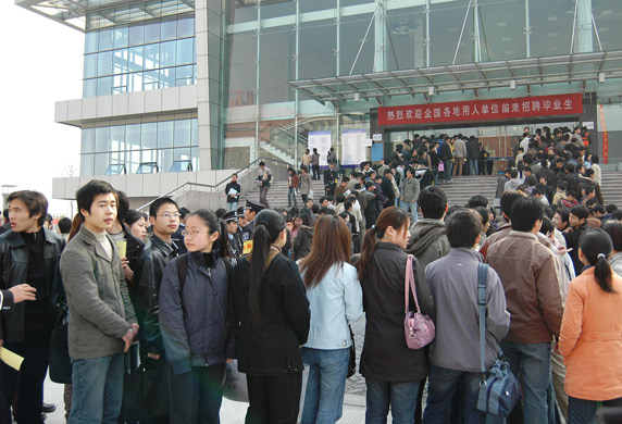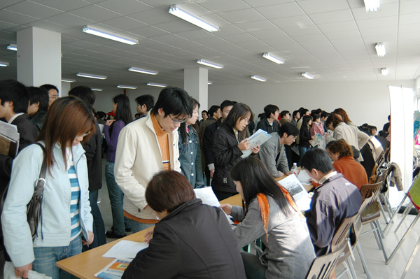 為了方便用人單位選聘人才,加強高校與社會的聯系,也為了給廣大畢業生尤其是春節前全力備考研究生而未能及時聯系用人單位的優秀學生提供更多的就業機會,3月31日,杭州經濟技術開發區、杭州市畢業生就業服務中心下沙分中心、中國計量學院、杭州電子科技大學、浙江理工大學聯合舉辦了“創業在下沙” 2005年春季高校畢業生就業招聘會。招聘會在我校舉行,共設有兩個會場,分別位于天健體育館和就業指導中心。   作為專為下沙學子而設的首次人才大集,共有200余家單位前來招聘人才。招聘會吸引了電子信息工程、電子科學與技術、機械制造及其自動化、自動化、電氣自動化、紡織、服裝、工業設計、測控技術與儀器、計算機科學與技術、通信工程、工商管理、信息管理與信息系統、財務管理、法學、信息與計算科學、藝術設計、市場營銷、英語等近萬名本、專科畢業生和畢業研究生參加。   上午九時整,招聘會準時開始。在招聘場館外排起百米長隊,等候多時的應聘者在志愿者的帶領下步入各個會場。數千個崗位,萬余名應聘人員令招聘會現場場面火爆。在應聘的學生中,除了中國計量學院、杭州電子科技大學、浙江理工大學三校的畢業生外,還不乏下沙其他高校及省外高校畢業生的身影。填寫材料、投遞簡歷、現場交流畢業生們抓住招聘會這個大好時機努力推薦自己,用人單位也充分利用招聘會的機會廣納賢才。