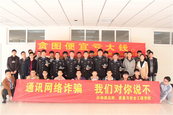 為了提升下沙高教園區(qū)大學(xué)生的安全防范意識,遏制通訊網(wǎng)絡(luò)詐騙的發(fā)案勢頭,下沙公安分局白楊派出所聯(lián)合質(zhì)量與安全工程學(xué)院創(chuàng)新宣傳教育方式,用大學(xué)生喜聞樂見、易于接受的方式將防范通訊網(wǎng)絡(luò)詐騙的知識普及給在校大學(xué)生。