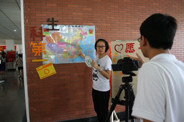 學校早已為新生們準備好豪華“開學大禮包”,里面有學生手冊、量院文化簡明讀本、安全防范宣傳圖冊、量院心理健康教育讀本、圖書館讀者手冊等新生指南。為迎接“小鮮肉”們,各個學院也是各顯神通:標準化學院準備了一堵背景墻,上面貼有標院在讀及已畢業的學生人數,新生到來后便與新增的數字合影;同樣,光電學院也希望通過攝影的方式,“給新生們做紀念,畢業的時候再拍一張,看到自己四年來的成長。”理學院的創意則來自學生會成員的頭腦風暴:簽名墻。“我們不斷地積累素材,最終受一個外國視頻的啟發,設置起簽名墻,并在上面留下自己的痕跡,以作紀念。”生命科學學院的新生們正聚精會神地在地圖上找自己的家鄉。“找到了!”一聲歡呼,新生們便手上持著生科學院的院徽,與自己的家鄉及剛剛寫上的心愿單合照,意味著今后便是一名生科學子。