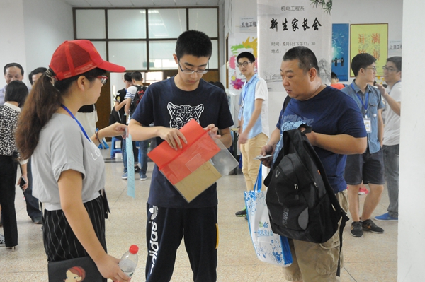“寢室的電用完了需要去水電卡處充值”、“身份證這些要記得帶上”……志愿者們一邊幫忙拿行李,一邊給新生介紹報到的流程和注意事項。“家長會問得更全面一些,比如學校的飲食怎么樣,周圍購物的地方在哪里”,14應用物理1班的姜同學說。今年的迎新志愿者共有500多名,其中300多名分散在學校各處:各大門的引導答疑,報到大廳一對一陪同,協助新生開通銀行卡、投保、繳學費、領取水電卡和鑰匙,走遍整個報到流程;另一批志愿者則前往車站迎新。“原來那些戴小紅帽的是學校的志愿者啊,他們幫助了我們不少,這個服務挺好的。”一位正在七號樓下休息的家長恍然道。在“小紅帽”的熱心幫助下,來自內蒙的楊同學和何同學已把行李安排妥當,兩位同學的家長十分感激,“多虧了這小伙子幫忙”。