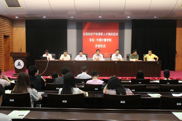 2015年5月28日上午,國家知識產權領軍人才全國高校巡講首站巡講開講儀式在我校聞廳二樓小報告廳舉行,我校黨委書記胡建成、中國知識產權培訓中心副主任孫瑋、國家知識產權局人事司人才處處長伊直、中國知識產權培訓中心培訓教務三處處長高強、華為技術有限公司知識產權副總監張仲卿、國家知識產權培訓(浙江)基地主任助理冀瑜等領導和來賓出席了開講儀式,來自校內外知識產權專業本科生、研究生、教師和部分專利代理機構人員100余人參加了開講儀式和講座。開講儀式由知識產權學院黨委書記周泛海主持。