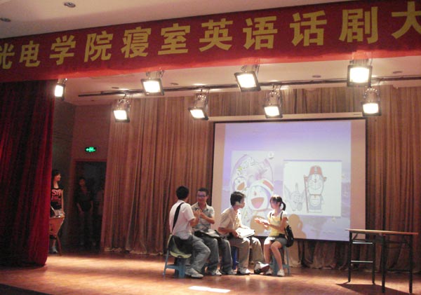 光電學院16個參賽寢室分別來自05級、06級同學,節目有《王子變青蛙》《新梁祝外傳》《曹沖稱象》等,演員們表演的惟妙惟肖。經過激烈的比賽和角逐,06光信1班的的11北411寢室的《新梁祝外傳》獲得了一等獎,06微電1班9北111寢室的《公主日記》、06光信2班9南517寢室《A letter from paradise》獲得二等獎。