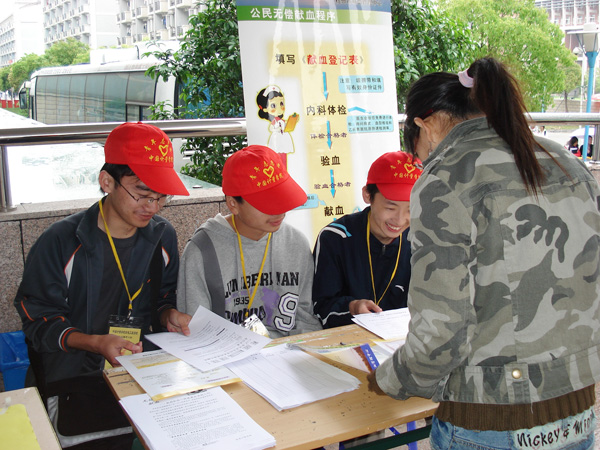 機電工程學院志愿者大隊積極響應校志愿者大隊的號召,在志愿者服務月開展了“無償獻血,造福百姓”的活動。   4月19日,機電工程學院的志愿者們在生活區配合浙江省血液中心的工作人員,開展了獻血的活動。活動期間,有近50名同學主動進行了獻血。4月21日,機電工程學院志愿者大隊又組織同學們前往浙江省血液中心,參加成分獻血活動。   通過此次活動讓更多的同學明白了到獻血的意義,體會到獻血的快樂。