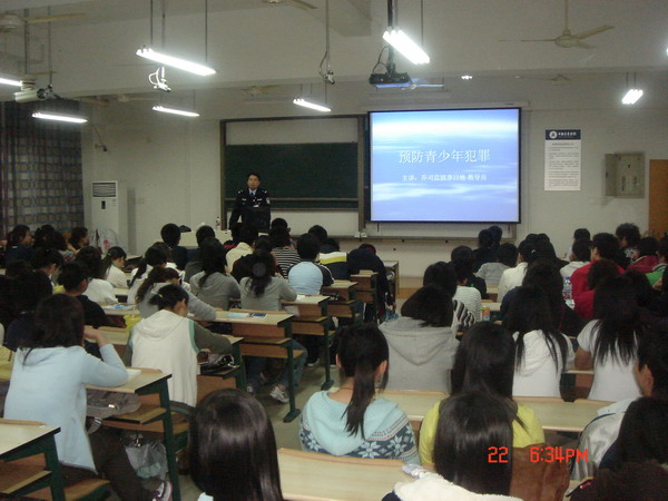 季教導員首先從圖表,數據出發為廣大學生分析了現今大學生犯罪的嚴峻形勢,以引起學生們的足夠重視。接著他“以案說法”列舉了源自于現實生活的大量鮮活而生動的案例,指出了一些青少年由于受法制觀念淡薄、意氣用事、迷上網吧等不良因素影響而走上違法犯罪道路的真實案例,深刻剖析了每個案件的原因、背景和后果,鄭重指出了他們因違法犯罪而受到法律嚴懲的嚴酷的教訓,極為生動而深刻地為廣大學生敲響了警鐘。