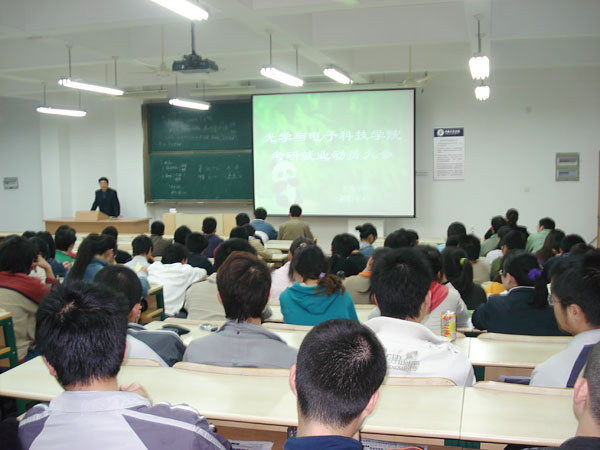 4月24日晚,光學與電子科技學院在翔宇樓103召開2004級學生就業考研動員會。光學與電子科技學院沈為民教授,黨總支副書記孫彩霞老師以及年級輔導員老師出席大會。