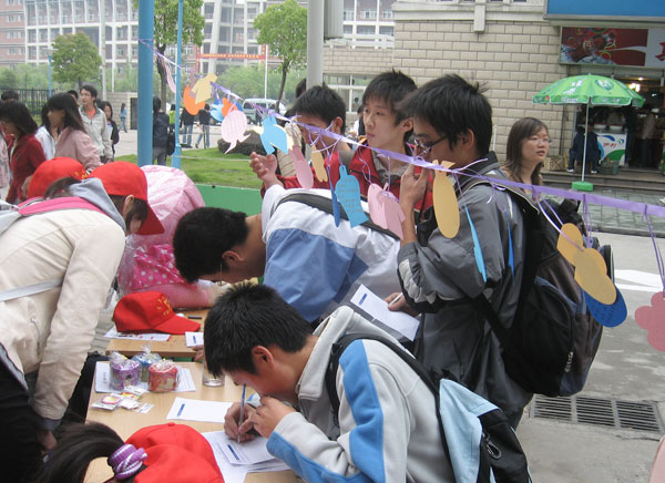 本次活動為志愿者服務月信息工程學院的第三個活動。活動以感恩為主題,通過發送短信和現場征集的方式面向全校同學征集感恩短信。最終從所征集的感恩短信中,評選出一等獎一名,二等獎六名,三等獎十名及若干鼓勵獎,并發放相關紀念獎品。配合當日活動,信息志愿者在前期做好了宣傳與征集工作,拓寬了活動的參與面,活動現場也聚集了許多同學,收到了顯著效果。