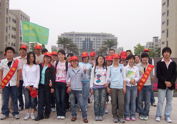此次活動(dòng)由外國語學(xué)院青年志愿者大隊(duì)主辦,以“綠色、環(huán)保、還春之色”為主題,在全校范圍內(nèi)招募了部分志愿者組成自行車隊(duì)伍,沿路途徑浙江財(cái)經(jīng)學(xué)院、杭州師范大學(xué)、浙江工商大學(xué)、杭州電子科技大學(xué)、浙江傳媒學(xué)院及浙江理工大學(xué)六所高校。志愿者手舉“還春之色”的綠色環(huán)保大旗,每到一站,都與各高校的志愿者們進(jìn)行交流并合影留念。各高校的志愿者代表也紛紛寫下寄語,表達(dá)對我們綠色環(huán)保活動(dòng)的支持。