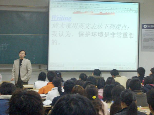 胡教授對近幾年四、六級考試的概況進行了講述,對英語學習的心得和考試的應(yīng)試技巧進行了解說。他強調(diào),參加考試的同學不管原來基礎(chǔ)如何,都要對自己堅定信心,注重每天的積累,堅持到底,肯定能考出好成績的。在場的同學個個認真聽講,認真記筆記。
