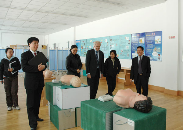 隨后,喬治?斯圖爾特教授在季建成教授等的陪同下參觀了體育館。在“心肺復蘇模擬室”聽完介紹之后,他對我校開設的這門“安全教育與正當防衛”特色課程表示非常贊賞,認為開設這門課非常有意義,要堅持不斷深入地做下去。