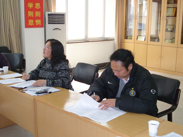 首先,孫彩霞結合學院對班主任的考核辦法,將《信息工程學院2007屆畢業生就業工作班主任目標責任書》的條款作了詳細解讀,同時強調:學院與班主任簽訂目標責任書是為了更好地體現“過程評估、利益捆綁、壓力輻射”,班主任要充分抓住對學生班級的激勵政策,充分調動班上同學的積極性,在班級中營造積極就業的良好氛圍。傅洪健書記代表學院與各位班主任簽署了目標責任書。