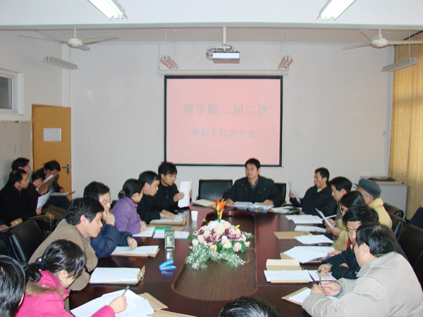 1月15日下午,理學院第二屆二次教職工代表大會在格致中樓403舉行。校工會主席金國雄、理學院31名教代會代表參加了會議。會議由理學院分工會主席李世偉主持。   大會首先聽取、討論并審議了理學院院長葛洪良的年度工作報告和年度財務報告。隨后,理學院分工會生活委員黃西荷向代表匯報了2006年工會會費使用情況。黨總支書記毛成也對2006年理學院取得的成績進行了簡單總結,對各位老師一年里所取得的成績給予了肯定。   最后,大會以無記名投票的形式通過了理學院2006年度年終分配方案。