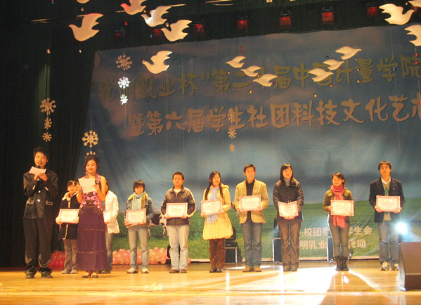 青春的精彩,體現(xiàn)在舞臺(tái)上個(gè)性的盡情揮灑,體現(xiàn)在帶著自信的演唱和表演中。在各二級(jí)學(xué)院、研究生部脫穎而出的26位選手,用優(yōu)美的歌聲、激情的表演獲得了場(chǎng)下同學(xué)的一陣陣熱烈喝彩。選手們曲風(fēng)各異,表演各有特色,令整場(chǎng)比賽高潮迭起,驚喜不斷。現(xiàn)場(chǎng)的親友團(tuán)更是各展神通,高舉著精心制作的宣傳牌,高呼著口號(hào),揮舞著熒光棒, 把全場(chǎng)的氣氛一下推向了高潮。精彩的演出吸引了很多同學(xué)前來(lái)觀看,甚至連過(guò)道里都擠滿了熱情高漲的同學(xué),為了看一眼選手的表演,許多觀眾不惜在門口排隊(duì)等上近半個(gè)小時(shí)。最終,來(lái)自外國(guó)語(yǔ)學(xué)院的陳敏以一首高亢的《青藏高原》獲得了評(píng)委和現(xiàn)場(chǎng)觀眾的一致認(rèn)可,摘得本次比賽的桂冠。理學(xué)院王麗怡、“167”組合等脫穎而出,成為當(dāng)晚星光燦爛的“校園十佳歌手”。