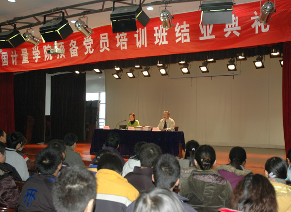近日,我校第二期預(yù)備黨員培訓(xùn)班結(jié)業(yè)。結(jié)業(yè)典禮由校黨委宣傳部部長(zhǎng)畢曉光主持,校黨委組織部部長(zhǎng)郝敬習(xí)出席典禮并講話。   第二期預(yù)備黨員培訓(xùn)班自10月24日開(kāi)班以來(lái),在近兩個(gè)月的學(xué)習(xí)中,采取形式多樣的教學(xué)方式,即有學(xué)校領(lǐng)導(dǎo)親自授課輔導(dǎo),也有優(yōu)秀學(xué)生黨員宣講,學(xué)員調(diào)研實(shí)踐,培訓(xùn)班緊密結(jié)合“評(píng)建創(chuàng)優(yōu)”,提高了預(yù)備黨員的思想政治素質(zhì),增強(qiáng)了黨員意識(shí)和責(zé)任感,為發(fā)揮學(xué)生黨員的模范作用搭建了平臺(tái)。培訓(xùn)班的580名學(xué)員順利結(jié)業(yè),有4個(gè)小組被評(píng)為“優(yōu)秀學(xué)習(xí)小組”,5名班委、組長(zhǎng)榮獲“優(yōu)秀組織獎(jiǎng)”,14名學(xué)員獲得“優(yōu)秀學(xué)員”稱(chēng)號(hào),并在結(jié)業(yè)典禮上受到表彰。與會(huì)領(lǐng)導(dǎo)還向蘇沛然等10名“評(píng)建創(chuàng)優(yōu)我先行——優(yōu)秀學(xué)生黨員巡回宣講團(tuán)”成員頒發(fā)了聘書(shū)。   組織部部長(zhǎng)郝敬習(xí)在結(jié)業(yè)典禮上講話,她充分肯定了學(xué)員們?cè)谂嘤?xùn)期間勤奮進(jìn)取、團(tuán)結(jié)協(xié)作、敢于創(chuàng)新、勇當(dāng)先鋒的良好作風(fēng),并對(duì)廣大學(xué)生黨員在教育部專(zhuān)家進(jìn)??疾炱陂g所起到的示范作用表示贊賞。同時(shí),她也對(duì)學(xué)員們提出了三點(diǎn)希望:一是要把培訓(xùn)班的結(jié)業(yè)作為新的開(kāi)始,努力做一名終身學(xué)習(xí)者;二是要理論與實(shí)踐相結(jié)合,努力做“終身實(shí)踐者”;三是要把個(gè)人理想與服務(wù)同學(xué)、為學(xué)校的發(fā)展、民族的復(fù)興緊密結(jié)合,努力做一名“信念堅(jiān)定、素質(zhì)優(yōu)良、樂(lè)于奉獻(xiàn)”的共產(chǎn)主義者。