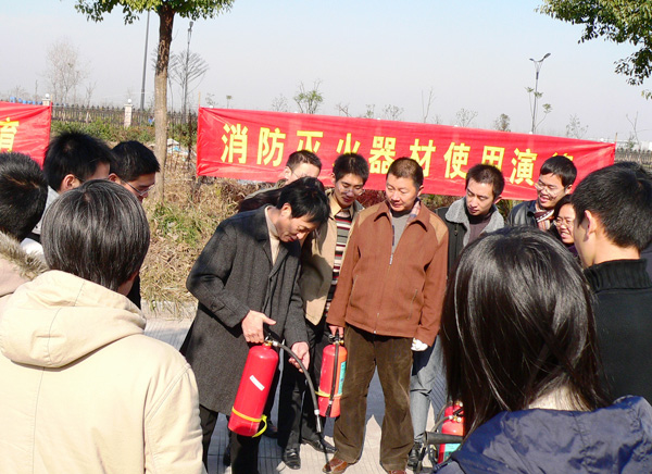 為了進一步落實學校冬季防火會議精神,增強全體教職工消防意識以及消防器材使用技能,2006年12月18日,保衛(wèi)處舉辦了滅火器滅火、消防水帶連接操作演練,11個二級學院的領導和老師參加了操作演練,對我校配備的消防滅火器材種類、滅火性質(zhì)進行講解和操作。全體參加人員都親手操作,達到實戰(zhàn)感悟,提高了消防自救能力。