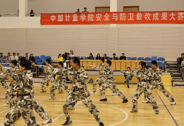 11月14日下午五點半,我校安全與防衛教改成果大賽在學校體育館內落下帷幕。來自信息、理學、生命、管理、法學等十個二級學院的選手參加了本次大賽。參賽選手們用一招一式展示了新時代大學生的形象。   經過激烈的角逐,人文社科學院、量新學院、理學院分列團體前三名,信息工程學院、機電工程學院、法學院、生命科學學院榮獲本次安全與防衛教改成果大賽的優勝獎,管理學院、量新學院、外國語學院、理學院和人文社科學院還被授予優秀組織獎榮譽稱號。本次大賽不僅鞏固了課內教學的知識和技能,更使得安全防衛意識更加深入人心,取得了良好的效果。   安全知識和素養是在校大學生面向社會的必要準備。為盡快落實高等學校體育教學“健康第一”的要求,我校體軍部在原有體育教學的基礎上,將安全教育、正當防衛與體育教學相結合,在大學體育教學中開設《安全教育與正當防衛》特色課程,把日常安全知識與武術正當防衛基礎技能有機的結合到體育教學中,使學生通過特色課程的學習,從生理、心理方面綜合提高應急能力。   據悉,本次安全與防衛教改成果大賽也是我校歷史上第一次以安全防衛拓展為主要內容的比賽,是我校體育比賽上的一個創新之舉。