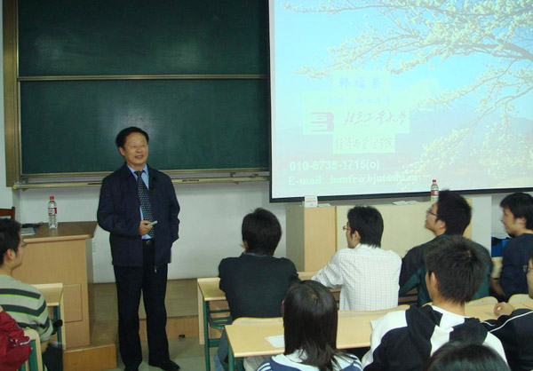 韓教授是中國質量協會常務理事學術委員會委員、中國國際經濟合作學會學術委員會委員、全國認證認可技術委員會委員、“國家質量獎”評定委員會委員、“國家質量獎標準” 編寫委員會成員、北京工業大學經濟與管理學院博士生導師,在質量管理和國際企業管理方面具有較深的造詣。