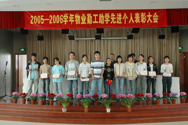 大會對獲得2005-2006年度物業(yè)勤工助學優(yōu)秀個人榮譽稱號的16名學生進行表彰,先進個人獲得者黃凌云在會上發(fā)言。
