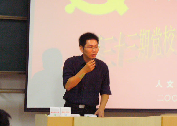 最后,副班長05級胡楨同學代表本期黨校學員發言,她表示要通過此次培訓認真學習,提高自身的覺悟,并號召每位學員共同努力,嚴格要求自己,在思想政治、學風建設等方方面面向身邊的黨員看齊,為學校的評建創優工作做出自己的貢獻。
