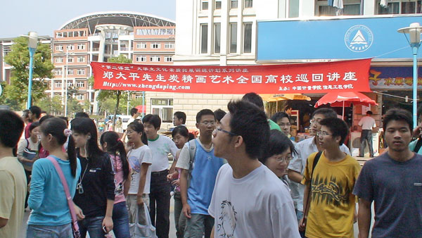 12日上午,近百件炭精畫作品在我校新食堂門口向學生一一呈現(xiàn),引起不少學生駐足觀看,并不時發(fā)出陣陣贊嘆。12日晚,鄭大平先生結合自己對炭精畫藝術多年的潛心研究與色彩方面的重大突破,以生動的藝術形式結合現(xiàn)場作畫、現(xiàn)場教學、成名作品展示等引人入勝的環(huán)節(jié)吸引了大批學生。講座使同學們進一步了解了炭精畫藝術及它的發(fā)展歷程,對這門古老的民間藝術具備了一定的了解。