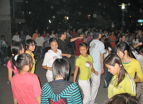 10月5日晚,在氣球、彩帶和熒光棒的妝點下,社區9號樓前的水泥地變成了洋溢著節日喜氣的中秋舞會的舞池。看著這么別致的舞臺和精心打扮的舞會環境,忙碌了一下午的校學生會的同學們也感到分外的滿足。晚上6點多,中秋舞會在熟悉舞會音樂中開始,經過短暫的醞釀之后,許多同學隨著音樂的節奏,踏入舞池,盡情的跳起舞來,興奮之情洋溢在每個人的臉上,歡聲笑語傳遍舞會的每個角落,也感染著周圍越來越多的同學,吸引著越來越多的同學加入到舞會中來,樓里宿管中心的阿姨也在同學們的熱情邀請下,加入到歡快的人群到中。舞會漸漸進入高潮。或許大家都不熟悉,甚至陌生,或許大家的舞步還是比較的笨拙,但此時此刻都不重要了,重要的是大家的快樂、大家的興奮之情在彼此的臉上傳遞著,在彼此心中蕩漾著。在舞會期間,也不時穿插著小小的游戲,以月餅作為游戲獲勝者的獎勵,更為節日增添氣氛。在參加舞會的同學中,有好多的新生,他們因為離家比較遠,不能在國慶和長假的時候回家和家里人團聚,只能留在學校里。他們沒想到學生會會組織這樣的舞會活動,雖然有點想家,但這樣過國慶,和這么多的同學一起過中秋節,是件非常值得紀念和回憶的事情。舞會結束后,許多的同學紛紛詢問校學生會的工作人員,什么時候再能組織這樣的活動。校學生的負責人表示,在今后要更多的舉辦類似的活動,使其成為豐富學社區文化生活的重要內容。