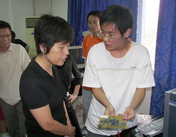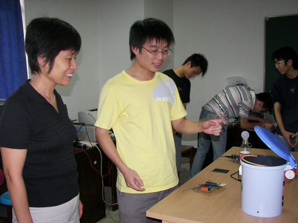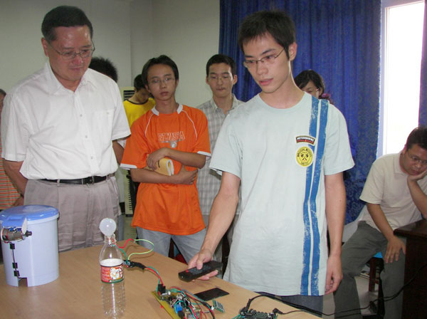 9月7日,現代科技學院召開了04級學生電子設計課外科技活動成果現場展示會。學院院長鄭穎君、基礎部主任黃孝華、指導教師施閣、盧颯、盧江麗以及學院辦公室主任劉文獻等參加了展示會。   展示會上,同學們展示了構思巧妙、頗有創意的課外科技作品。李耿、趙軍、張銀丹、李增蕾等同學設計的“紅外調光器”利用普通的電視遙控器可以控制照明燈的亮度;陳青、林丹、徐麗君、陳淑吉、沈明等同學設計的“盲人指南針”能夠實現指向南方的時候發出音樂提示;謝晶、邵江財、項鳴、張小麗等同學設計的“進出人數統計器” 能夠實現對開放實驗室或建筑物進出人數的自動統計;徐曉群、劉瞬華、王林偉、陳玲英等同學設計的“智能垃圾桶”當運動物體接近垃圾桶時,實現自動開啟、延時關閉;柳薛斌、王斯遠、陳晶晶、鄭少靜同學設計的“家電遠程控制器”利用家用電話網絡實現異地對家用電器無費用的遠程控制。   鄭穎君代表學院表達了對指導教師的感謝;對同學們通過刻苦努力與團隊合作獲得的科技作品給與了高度的評價。她鼓勵各位同學再接再厲,爭取在明年的電子設計競賽中取得優異的成績;希望他們能夠帶動廣大同學共同參與;不僅要提高自己的工程實踐與創新能力,并且要培養團隊合作與堅忍不拔的精神,在開發智商的同時開發自己的情商。   據悉,現代科技學院已相繼開展了物理實驗、電子設計、機械設計等一系列的學生課外科技活動,學院將通過廣大師生的努力,不斷提升學生課外科技活動水平,提高學生動手能力與創新意識。